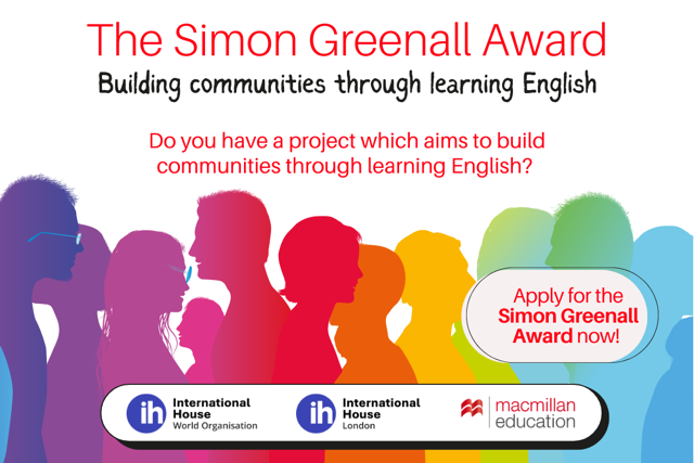 The award celebrates the life and work of Simon Greenall OBE, teacher, trainer, materials writer, President of IATEFL, trustee of International House. It is kindly sponsored by Macmillan Education, International House London and International House World Organisation. In the course of his work, Simon travelled around the world, and wherever he went, he made friends. He was a great communicator and the award reflects his wish to build communities through learning English.